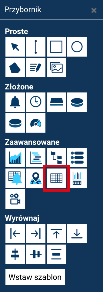 Tabela standardowa służy do wyświetlania ostatnich wartości wybranych tagów w formie tabelarycznej.