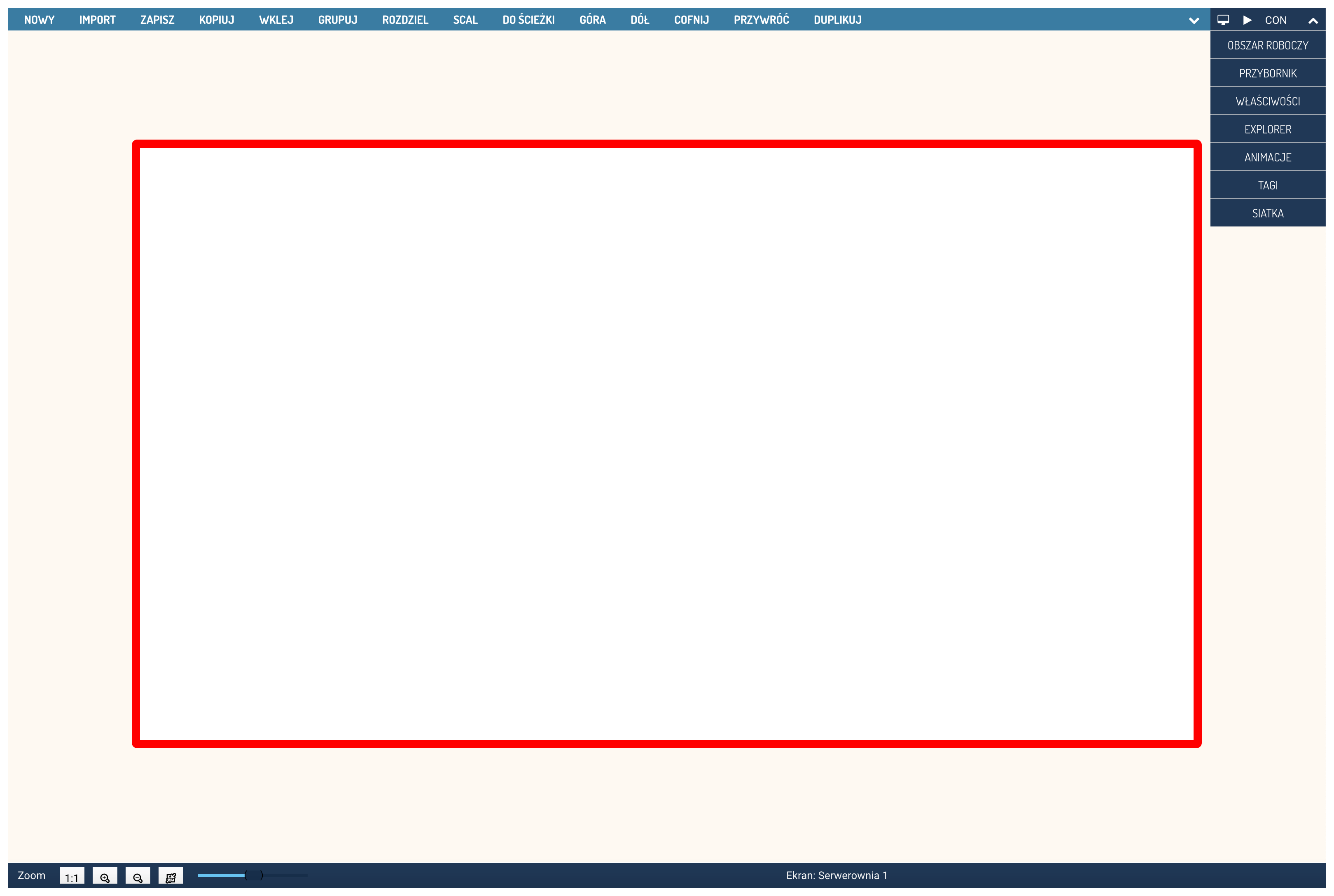 Obszar roboczy ograniczony jest ramką odzwierciedlającą rzeczywisty rozmiar ekranu synoptycznego.