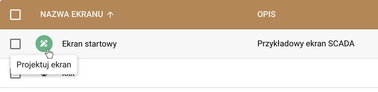 Kliknij ekran w tabeli, aby przejść do jego szczegółów. W dolnej części okna dostępny będzie przycisk PROJEKTUJ — użyj go, aby uruchomić tryb projektowania. -