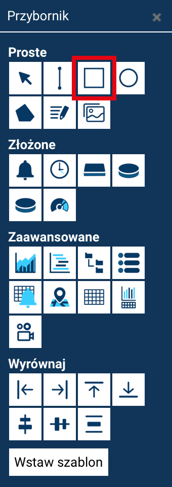 - Wybierz narzędzie Prostokąt z Przybornika.
