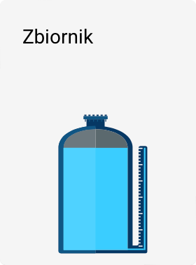 Grupa ZBIORNIKI obejmuje szablony służące do wizualizacji zbiorników, silosów oraz elementów podglądu poziomu cieczy. Obiekty te są wykorzystywane do graficznego przedstawiania aktualnego stanu napełnienia na podstawie wartości odczytywanych z tagów.